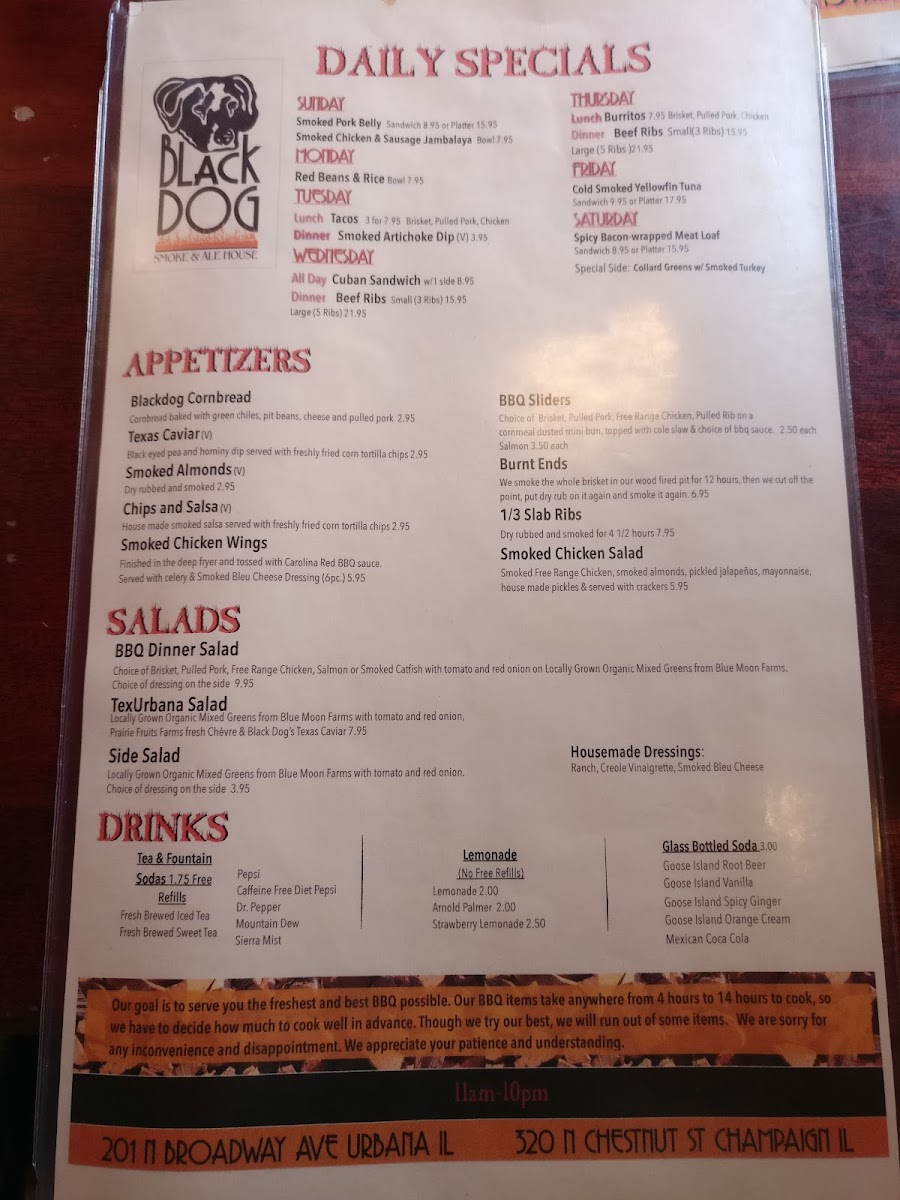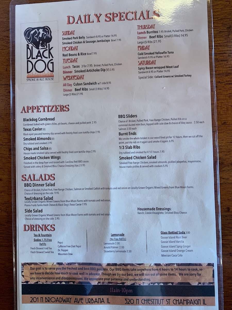 Welcome to Black Dog Smoke & Ale House, Urbana's premier destination for barbecue enthusiasts. Nestled at 201 N Broadway Ave, this vibrant eatery specializes in smoked meats and hearty sides, all crafted with local ingredients.